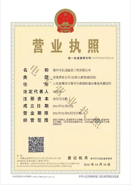 青州市億成溫室工程有限公司是一家從事現(xiàn)代化智能日光溫室、單體溫室、連棟溫室、紋絡(luò)型溫室、生態(tài)酒店溫室等工程的設(shè)計(jì)、施工單位。公司有完善的科技力量,精良的設(shè)計(jì)團(tuán)隊(duì),優(yōu)良的配件生產(chǎn)加工設(shè)備及廠(chǎng)房, 多年經(jīng)驗(yàn)的施工安裝隊(duì)伍,完善的售后服務(wù)體系,為客戶(hù)打造美觀(guān)、節(jié)能、滿(mǎn)意的多類(lèi)溫室工程。