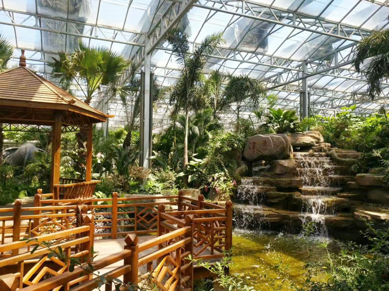 生態(tài)溫室采用輕鋼結構建造,以聚酯板材或玻璃做覆蓋,外觀晶瑩剔透,采光效果佳,環(huán)保、節(jié)能。