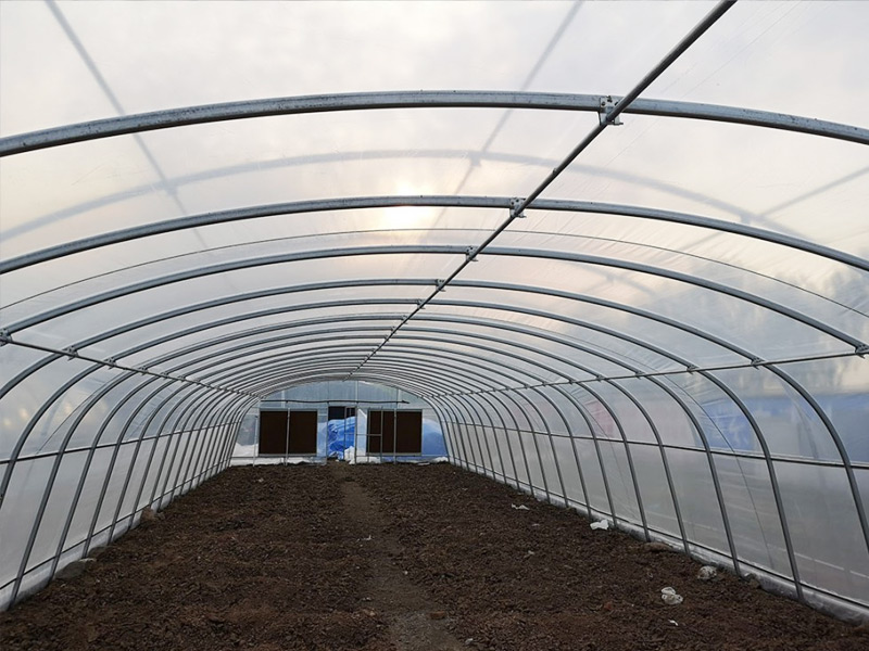 溫室頂部采用8-15絲PO膜覆蓋,外層防紫外線,內(nèi)層防結露,終身消霧防流滴,四周墻體也可根據(jù)用戶要求作相應的變化。