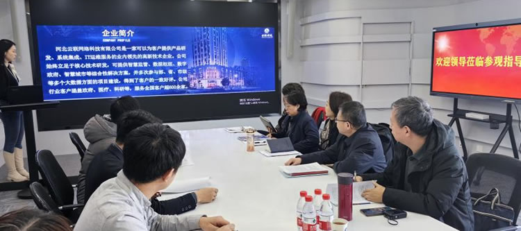 在河北云聯(lián)網(wǎng)絡(luò)科技有限公司,調(diào)研組聽(tīng)取了CEO甄云飛關(guān)于公司發(fā)展情況介紹,以及數(shù)字化技術(shù)發(fā)展的專家支持需求,并提出公司發(fā)展計(jì)劃。