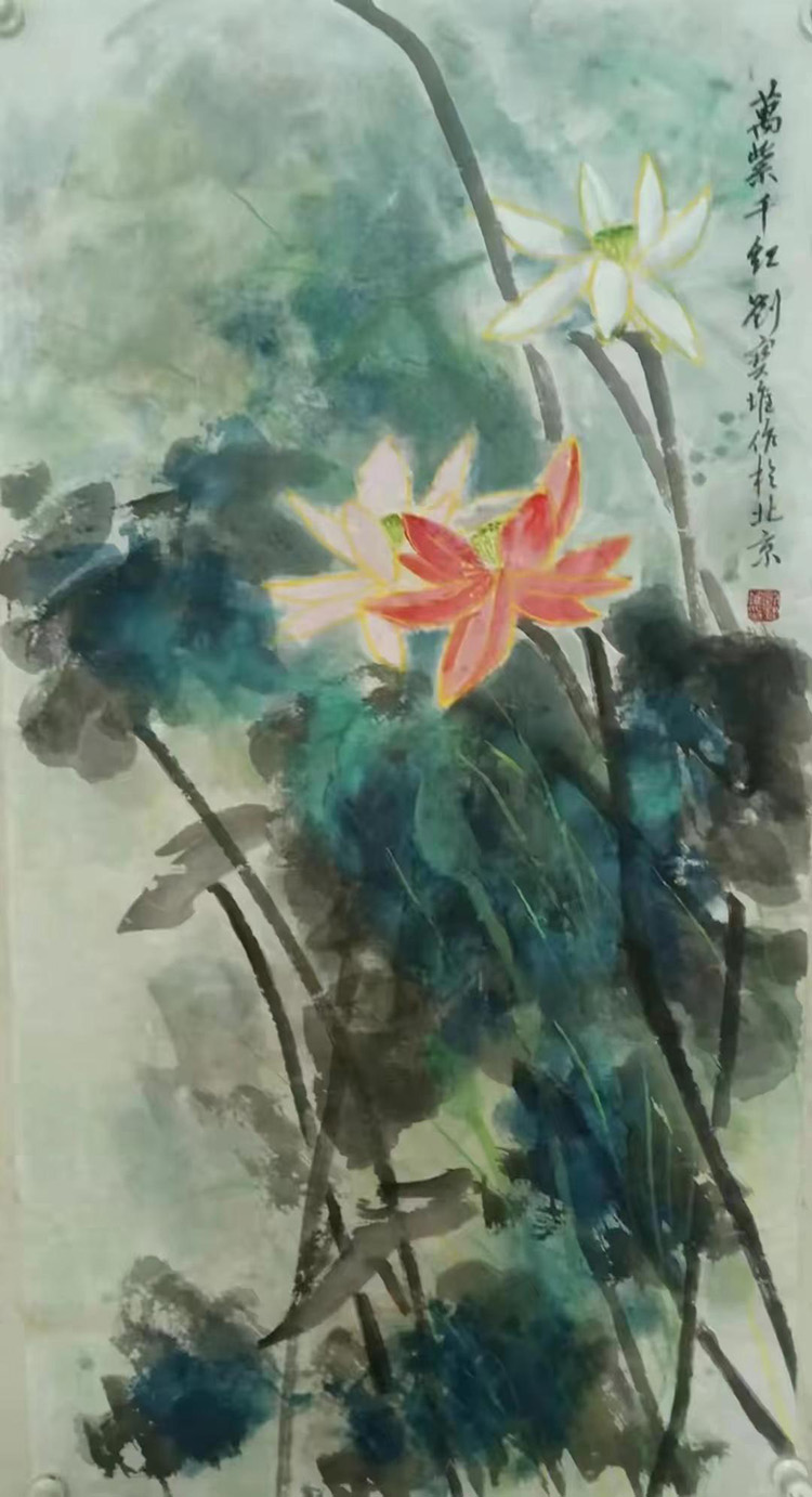 劉寶堆國畫荷花作品《萬紫千紅》55x90