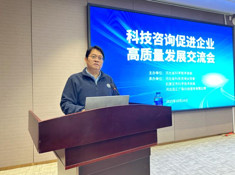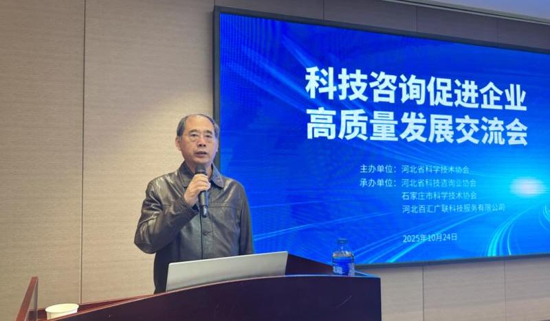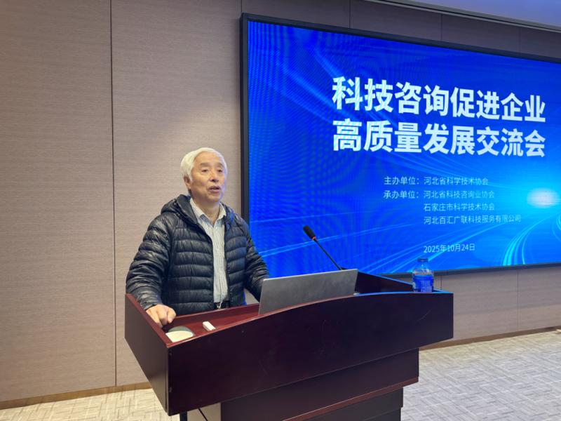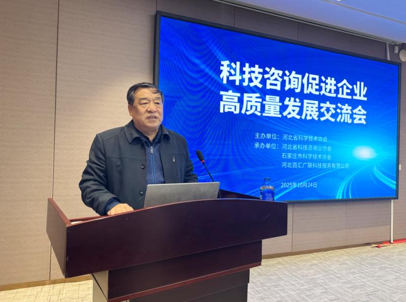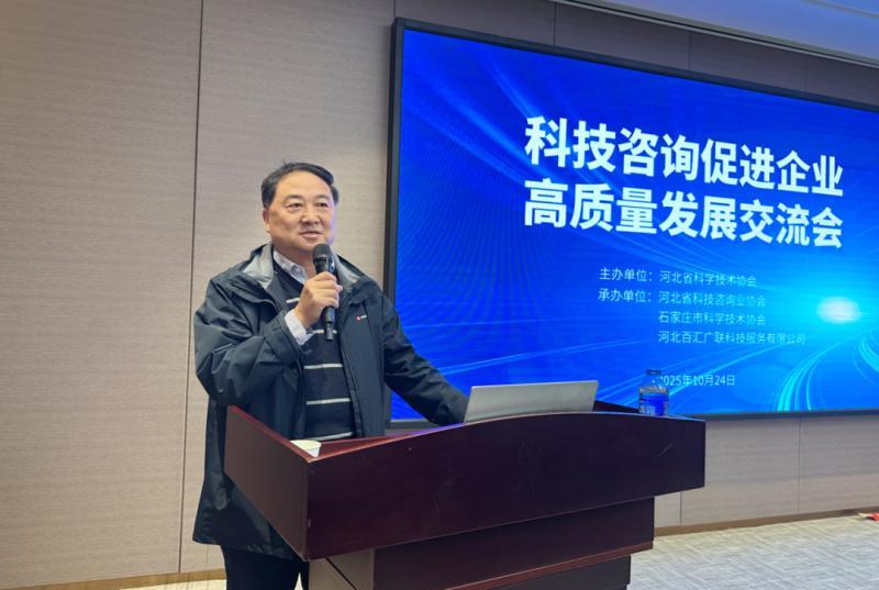 2025 年 10 月 24 日,由河北省科學(xué)技術(shù)協(xié)會(huì)主辦,河北省科技咨詢業(yè)協(xié)會(huì)、石家莊市科學(xué)技術(shù)協(xié)會(huì)、河北百匯廣聯(lián)科技服務(wù)有限公司聯(lián)合承辦的 “科技咨詢促進(jìn)企業(yè)高質(zhì)量發(fā)展交流會(huì)” 在石家莊市高新區(qū)舉辦 。來自全省科技咨詢業(yè)協(xié)會(huì)會(huì)員單位、科技型企業(yè)、科研院所的 80 余名代表齊聚一堂,圍繞科技咨詢助力企業(yè)創(chuàng)新轉(zhuǎn)型、推動(dòng)產(chǎn)學(xué)研用深度融合展開深入探討。